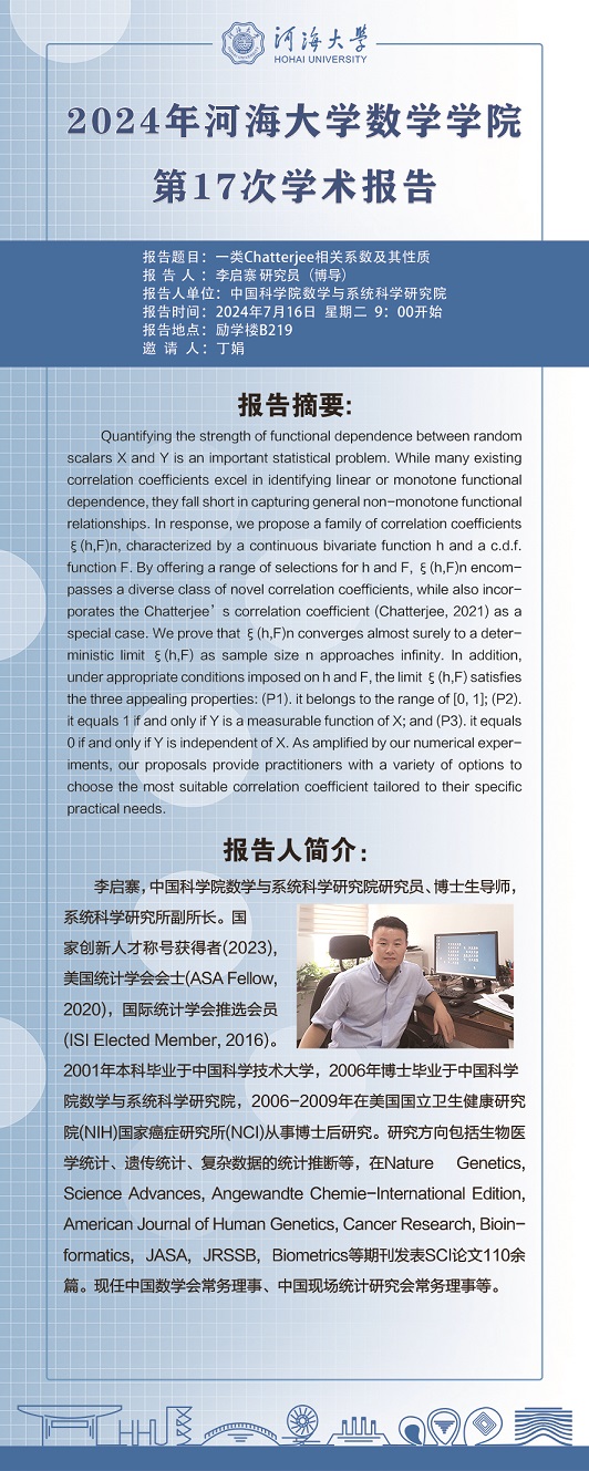 PA视讯第17次学术报告:一类Chatterjee相关系数及其性质