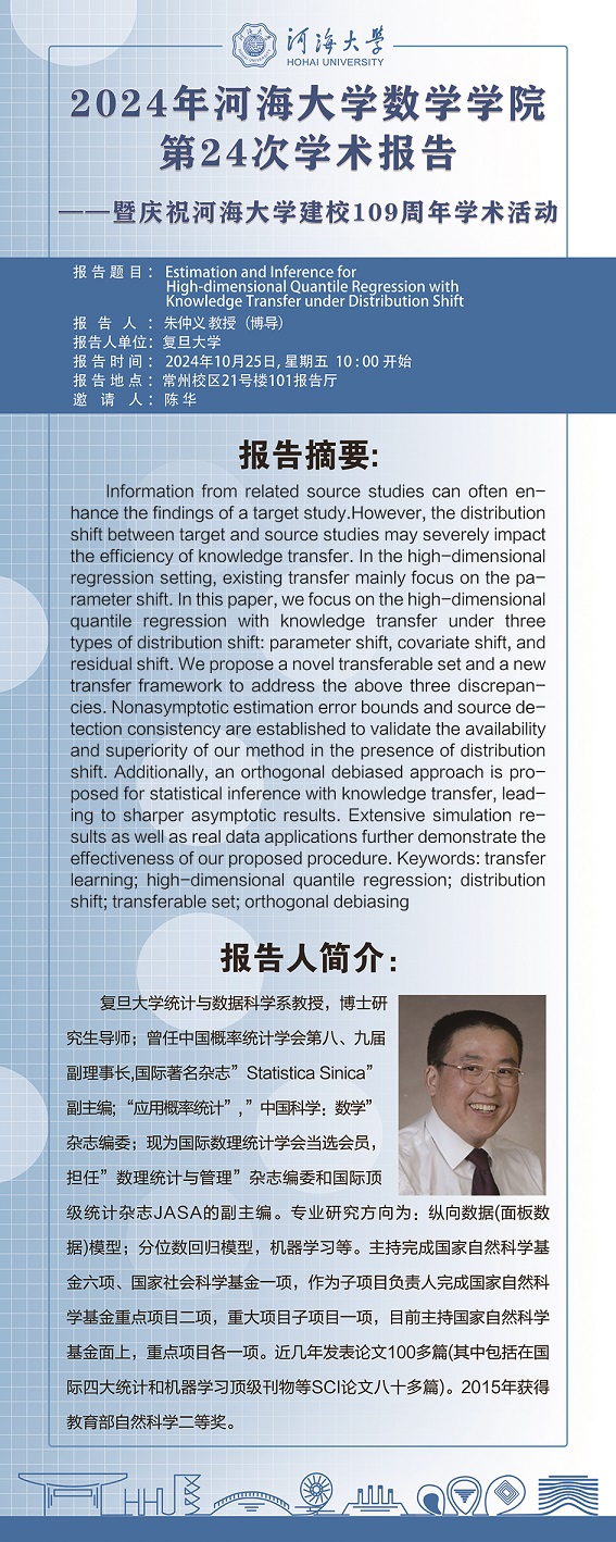 PA视讯第24次学术报告:Estimation and Inference for High-dimensional Quantile Regression with Knowledge Transfer under Distribution Shift